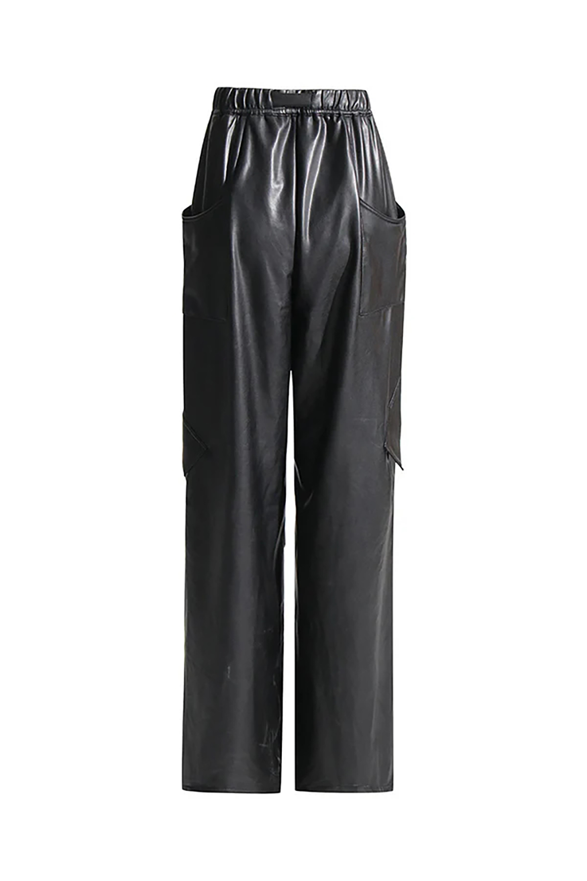 Unleash your inner rocker with our vintage-inspired outfit! These baggy faux leather pants boast a low-waist design complete with a built-in belted elastic waistband, ensuring both comfort and sleekness. This full-length cargo pants is adorned with draped details, adding a touch of elegance for women, while the wide patch pockets provide practical yet stylish functionality. Ready to make a statement? Step into our boutique and rock your own style!